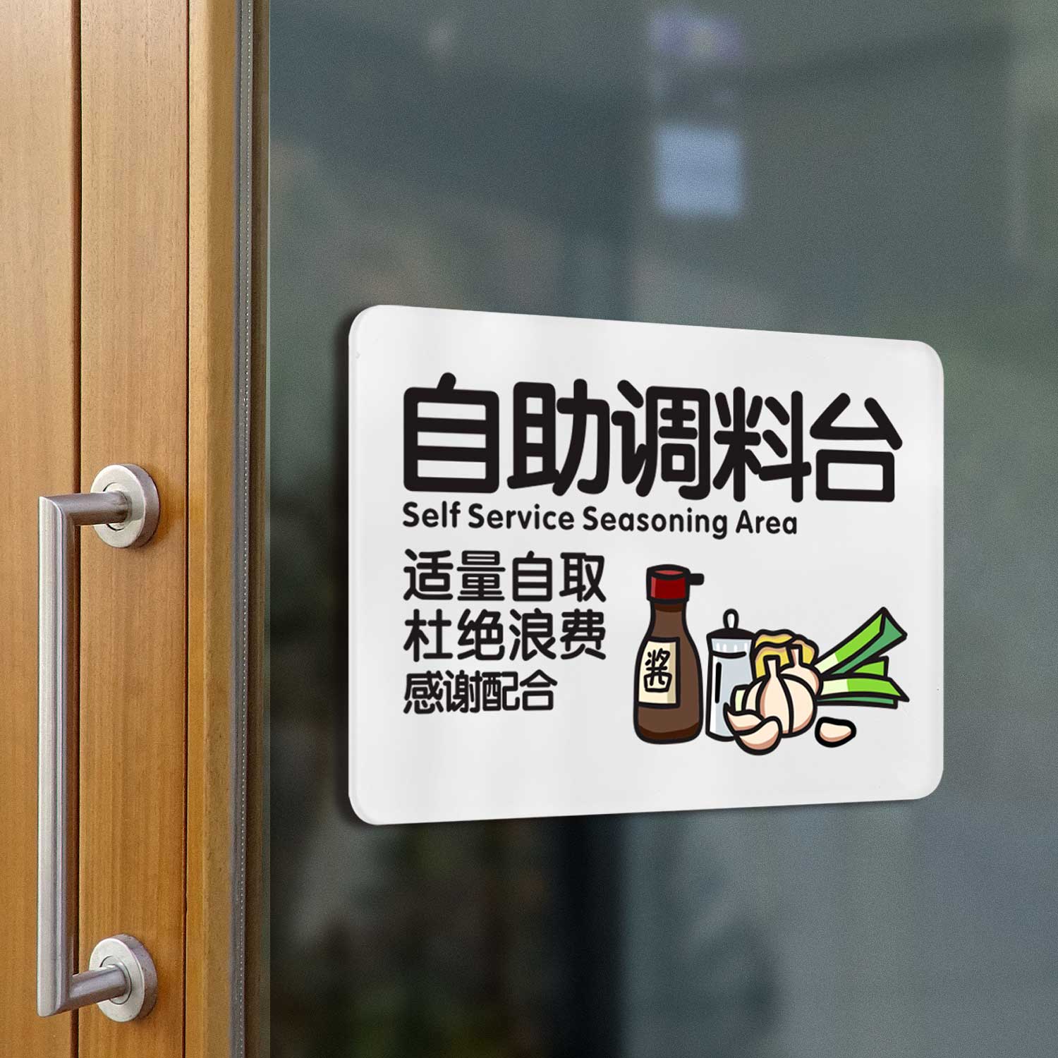 餐厅标识牌自助调料小料区提示牌每位23456元杜绝浪费自助餐厅牌