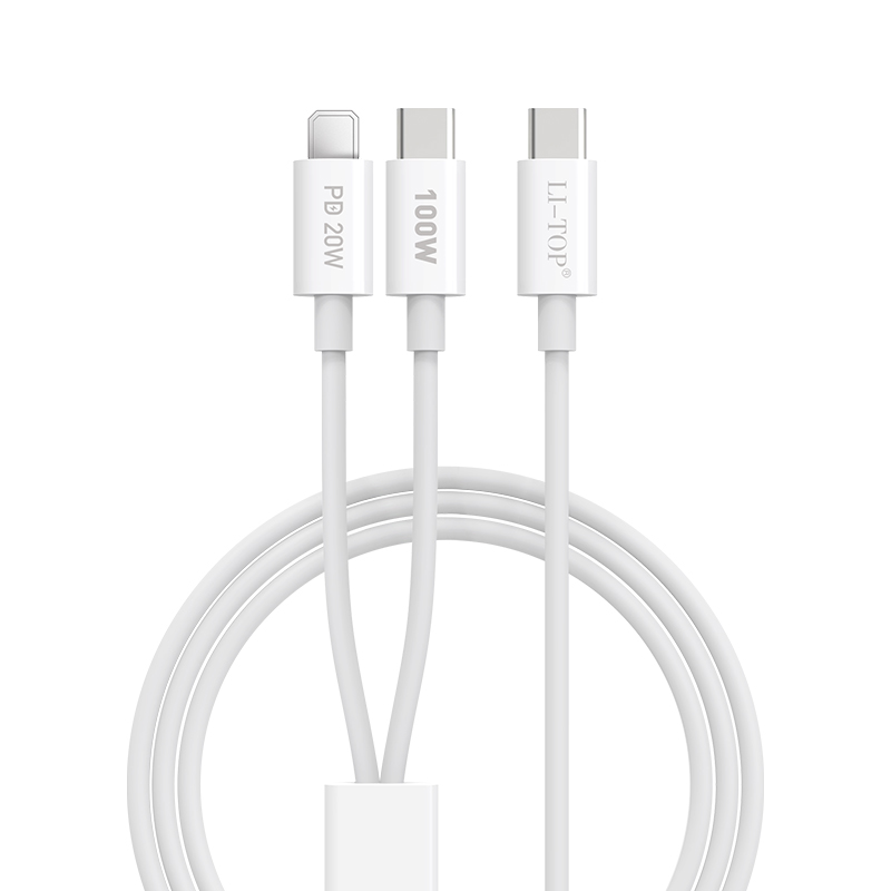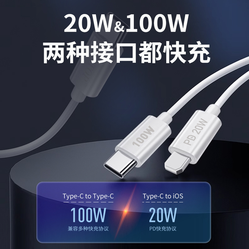 100W适用华为小米OPPO苹果12 13 14pro PD20W快充一拖二双快充闪充线多功能通用车载手机充电线数据线批发