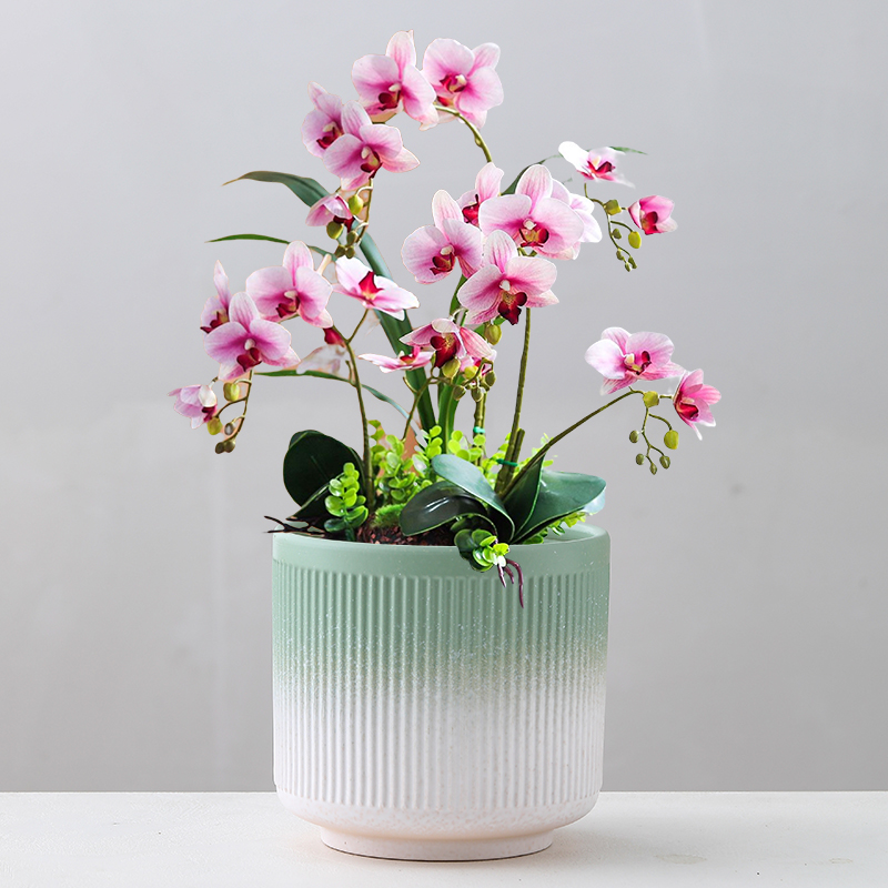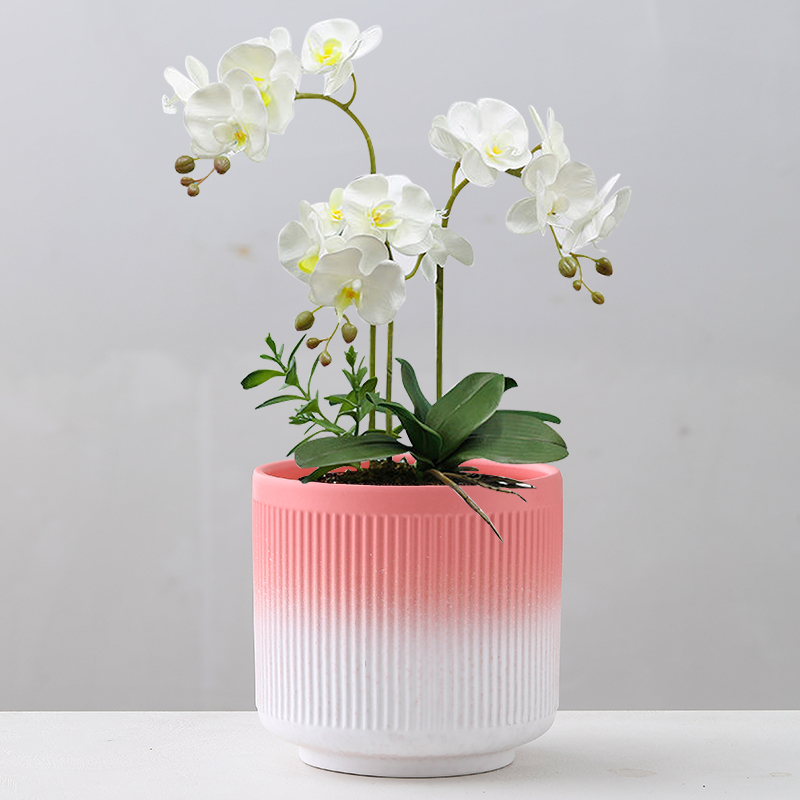 北欧简约花盆陶瓷中号大号家用带托蝴蝶兰专用ins风多肉绿植花盆