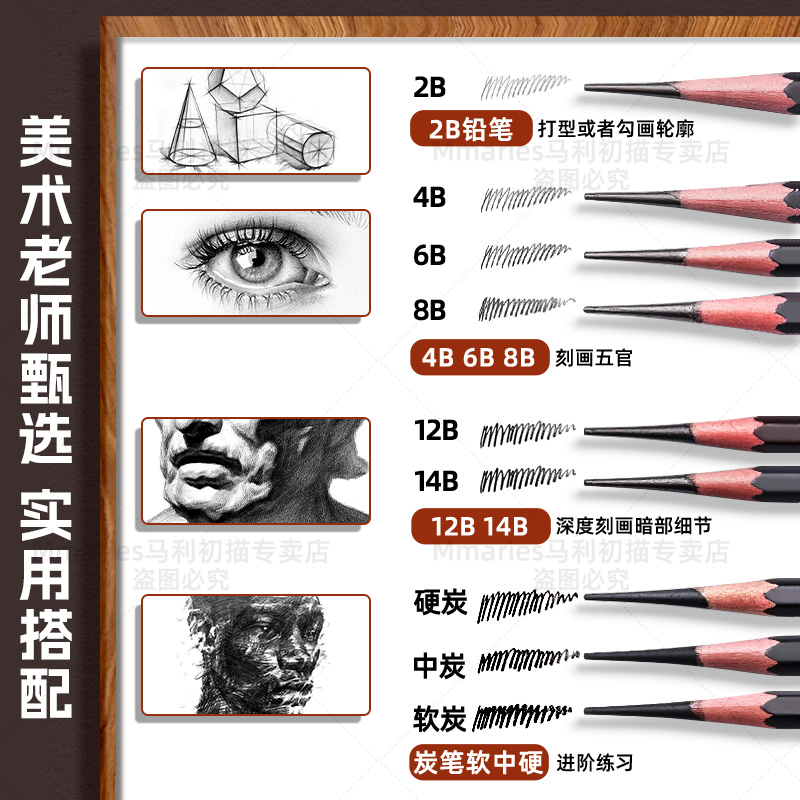 马利素描工具套装铅笔美术生专用炭笔学生2b14b6b绘画初学者入门基础专业画画速写马力2比铅笔工具全套用品hb