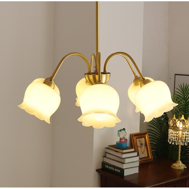 法奶美油全铜吊灯复古铃兰花朵灯中古书房卧室SS-D7728灯具式轻式