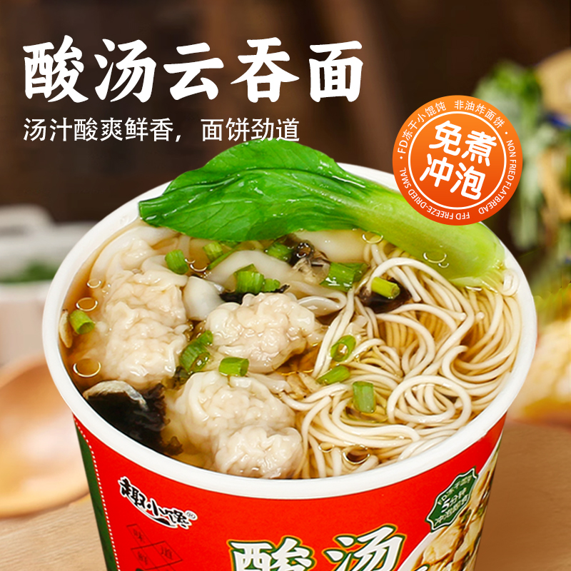 趣小馋云吞面胡椒鸡汤味馄饨面桶装冲泡面拉面方便面整箱批发混沌