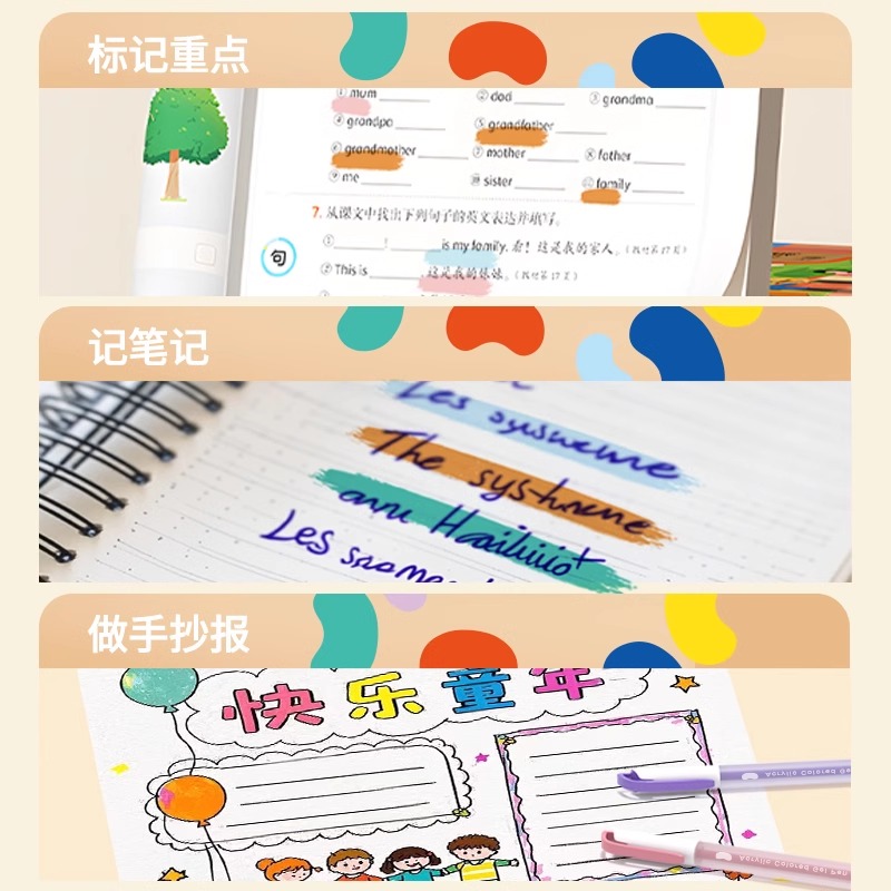 掌握中性马克笔彩色丙烯中性笔学生用手账笔美术描边勾线笔不透色可叠色初中生专用24色12色36色绘画笔可水洗