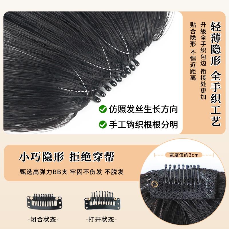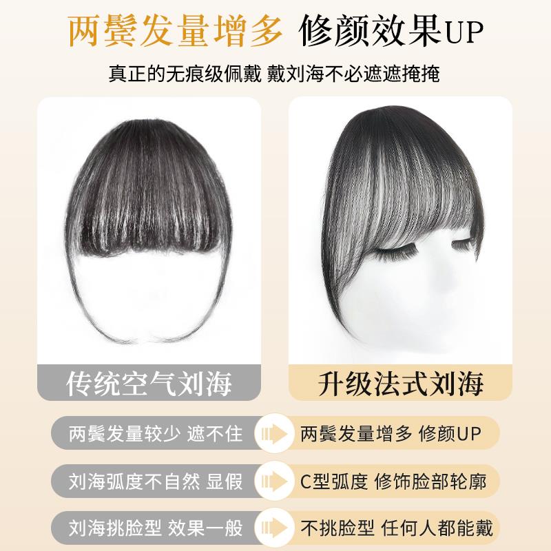 空气刘海假发女片自然前额全真人发增发量蓬松头顶轻薄法式假刘海
