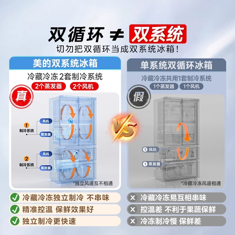 美的508法式双系统多门净味四门双循环无霜一级大容量家用冰箱
