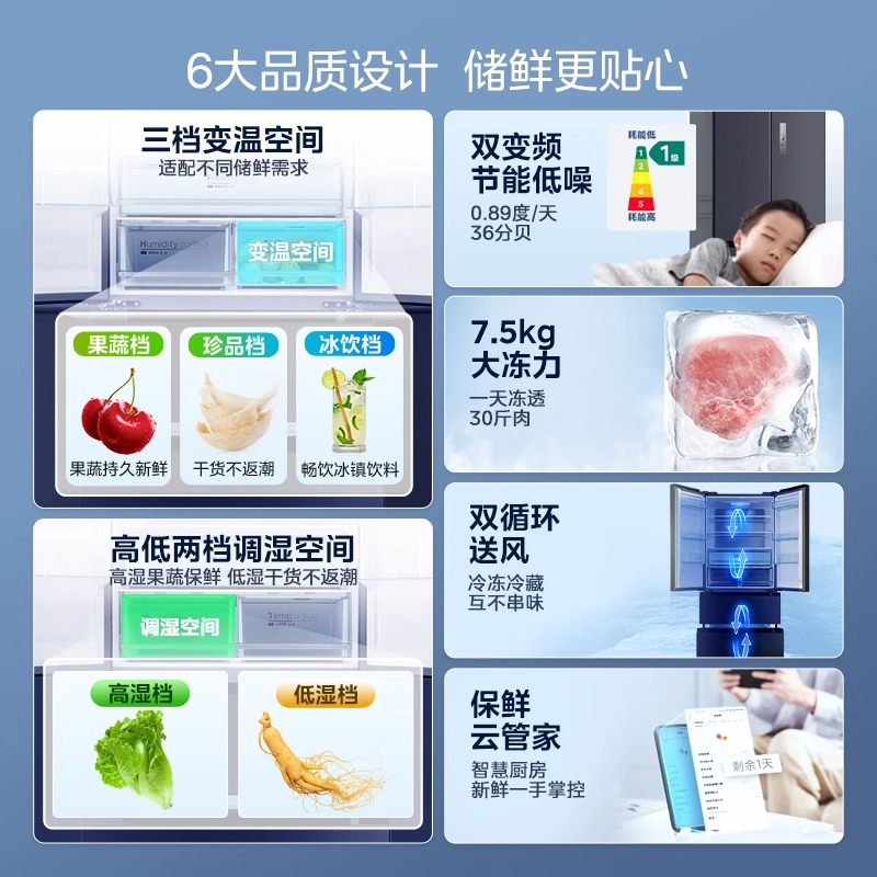容声526L双净双系统法式多门一级能效变频家用冰箱以旧换新补贴