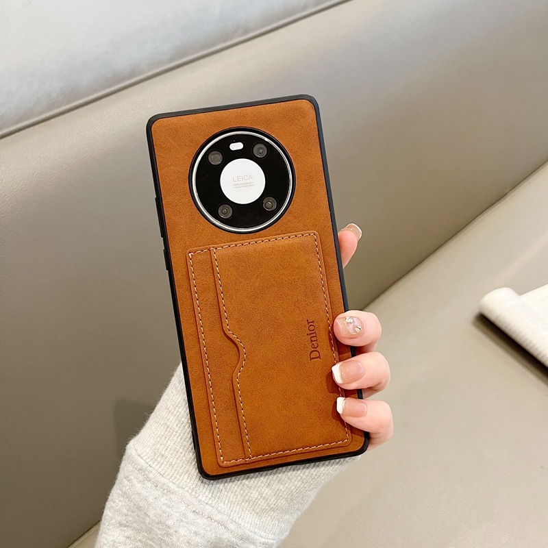 带支架一体适用60华为mate50手机壳mete40pro插卡p60卡槽p50放证件卡套meta30epro5g高级感卡包p40素皮保护套
