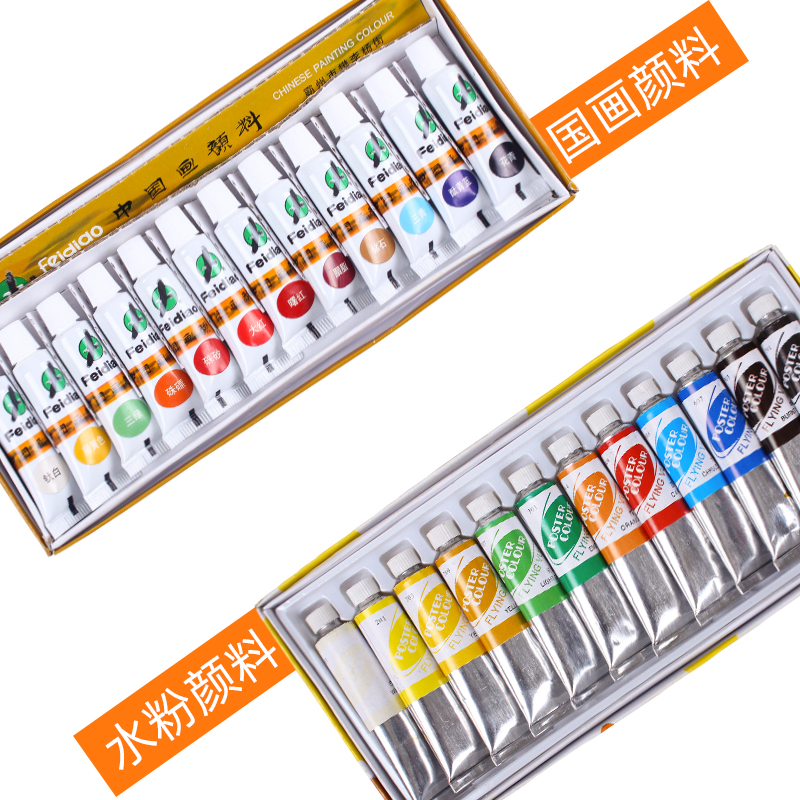 国画颜料12色18色24色36色初学者入门绘画涂鸦颜料套装水粉颜料