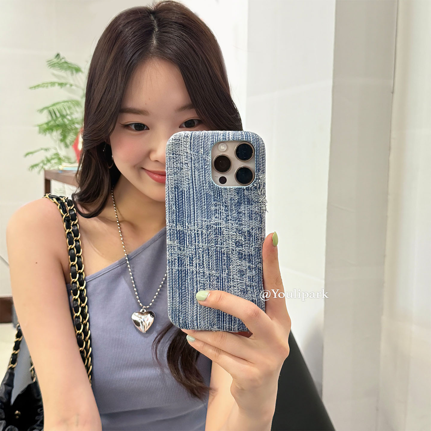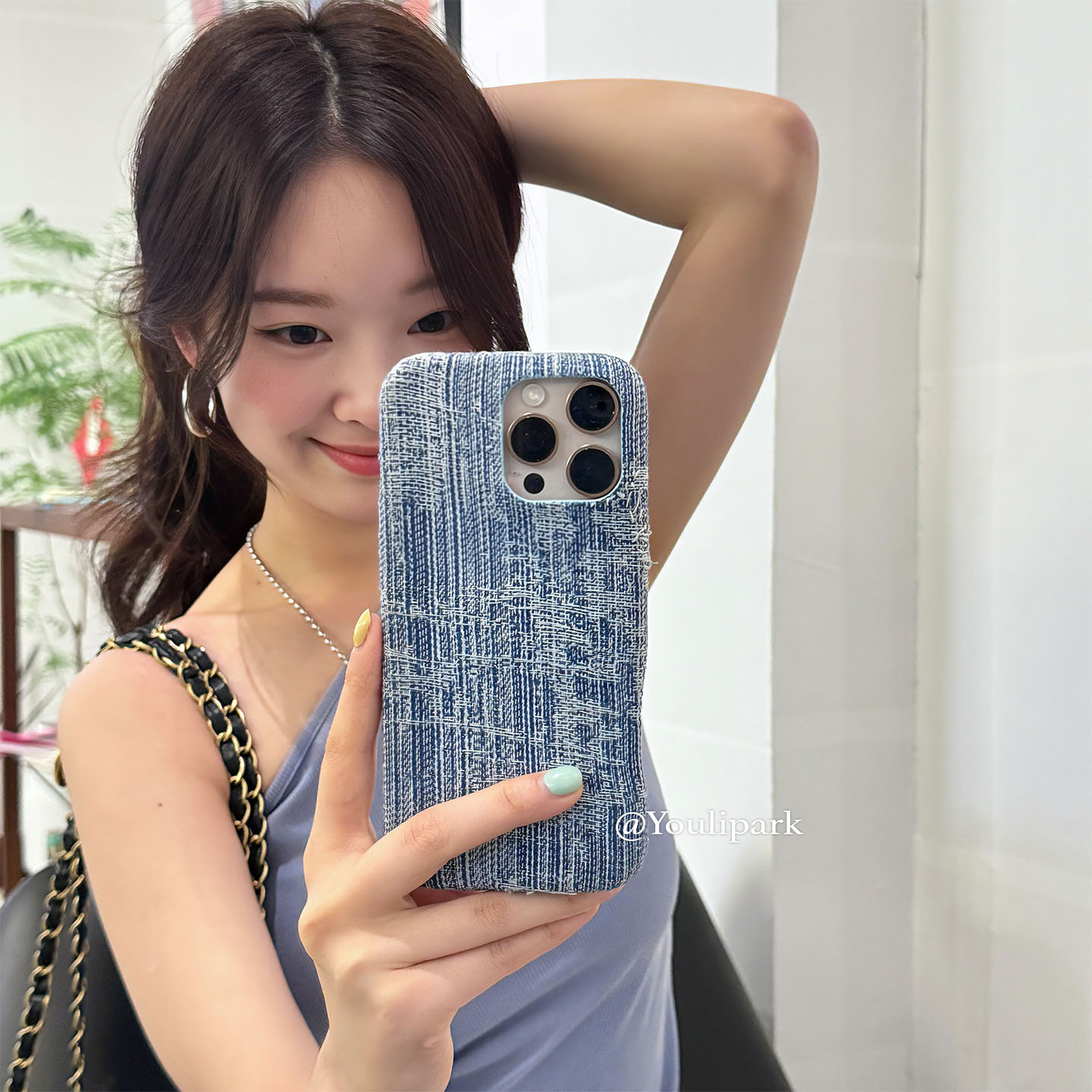 由里公园ins小众简约个性牛仔布格纹15适用17pro苹果17ProMax手机壳iPhone16全包17新款14Promax保护套13少女
