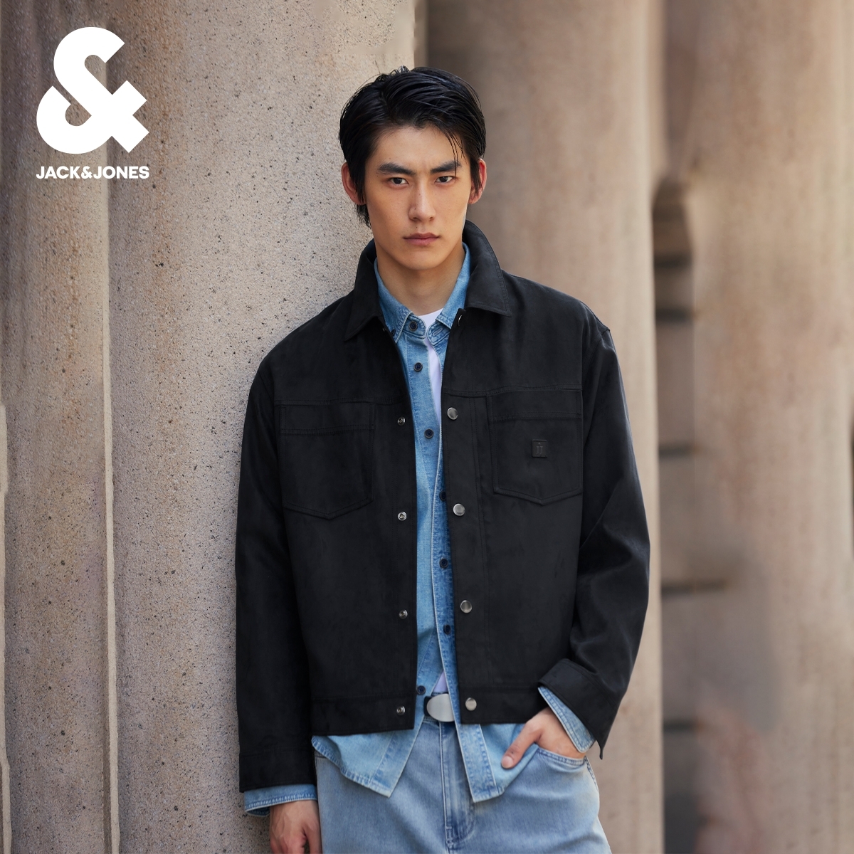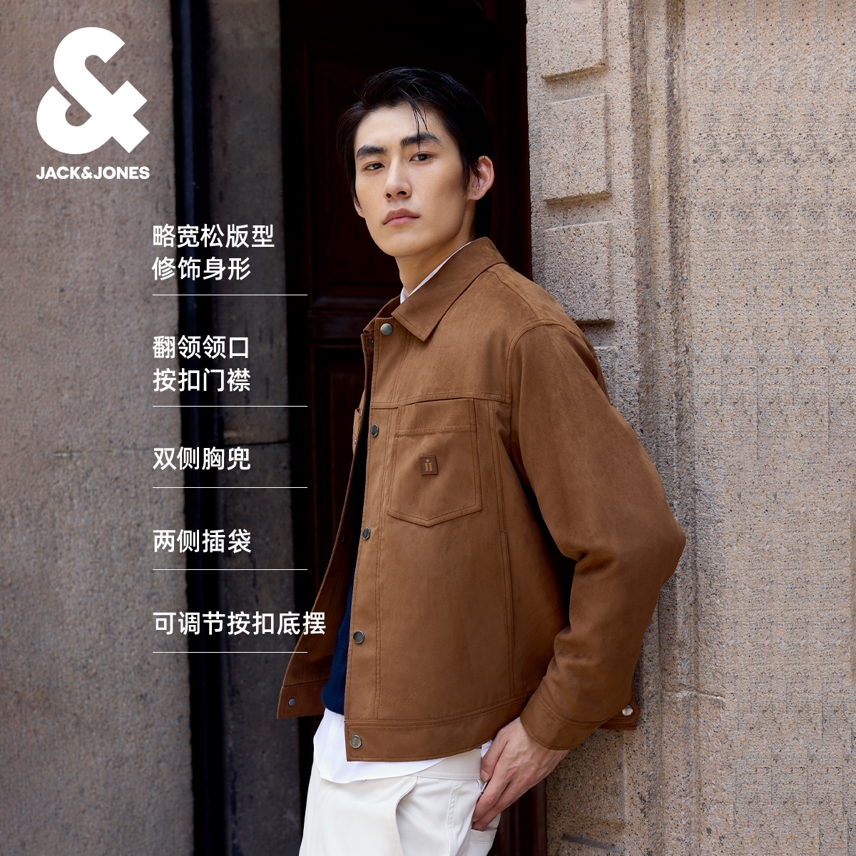 杰克琼斯男装夹克秋季常规版型摁扣门襟多口袋可调节底摆长袖上衣