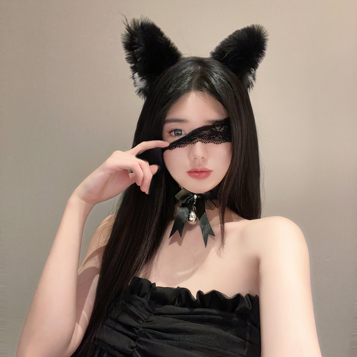 (发箍+项圈)猫耳朵铃铛头箍性感狐狸发卡女蕾丝眼罩可爱发饰装饰