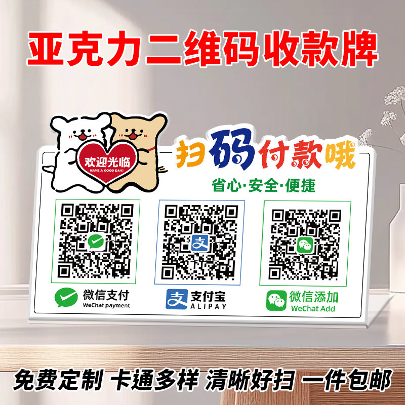 收付款二维码展示牌定制亚克力收款码摆台微信扫码加好友支付收钱立牌做店铺商家支付宝收银牌子制作高级摆件