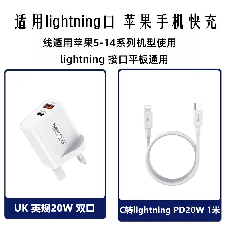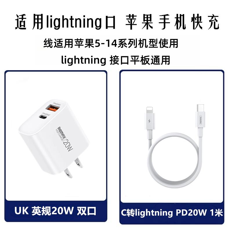REMAX适用蘋果15充電14港澳版PD快充20W雙口iphone12安卓手机通用英美欧规QC3.0平板插頭typec快叉USB頭套裝