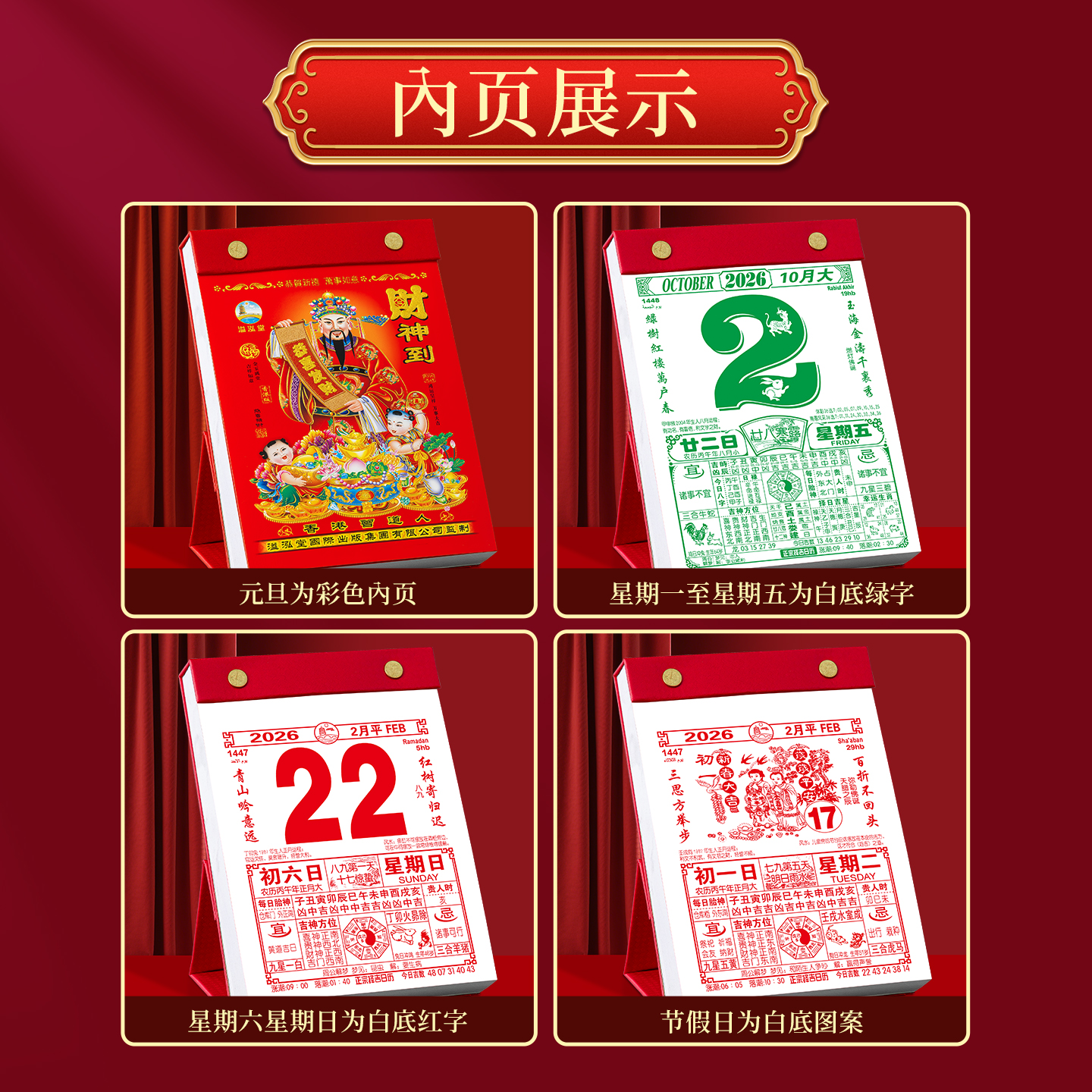 桌面立式日历2026年手撕老黄历大号台历每天一撕皇历正版老式手撕万年历年历家用黄历农历桌面立式每日一页