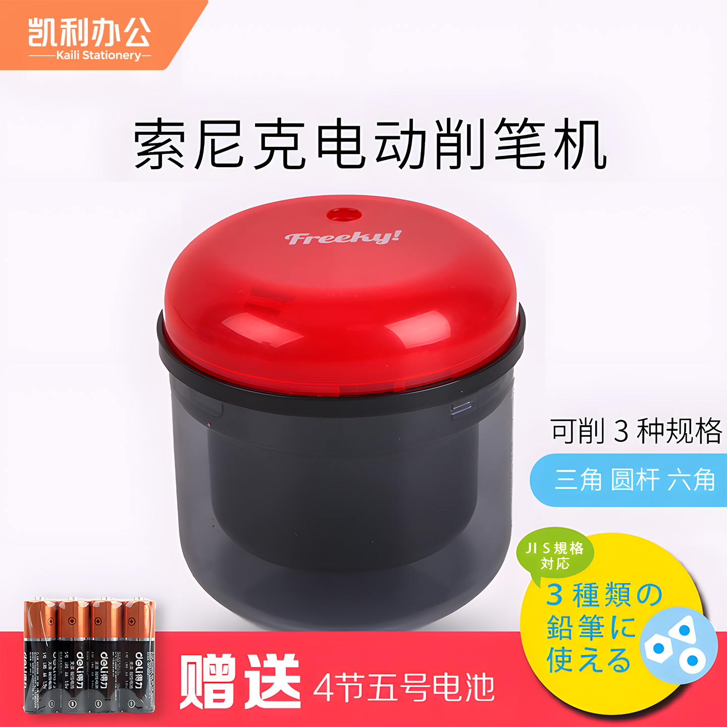 日本索尼克SONIC电动削笔机小学生用电池式削笔器卷笔刀送4节电池削笔需手握向下送铅笔开需开关削好后空转