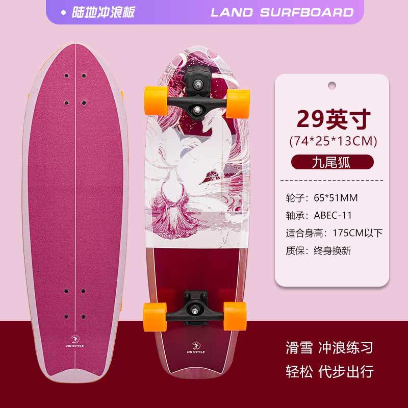 中魅陆地冲浪板S6滑板男女成人初学者路冲板儿童专业免蹬地陆冲板