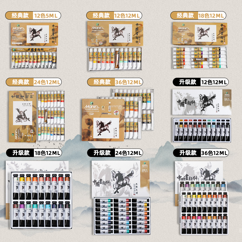 马利牌国画颜料初学者套装用品工具全套小学生专用12色水墨画材料工笔画24色中国画入门花鸟山水正品