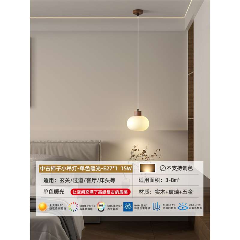 复古中古入户玄关玻璃小吊灯长线主卧室吊线灯新中式装饰氛围灯