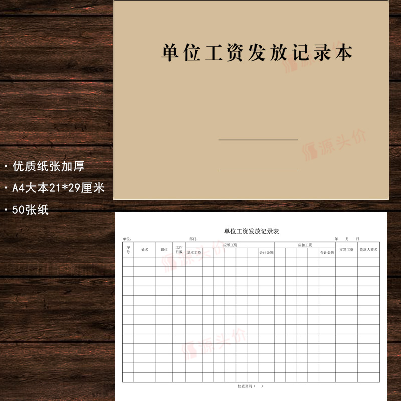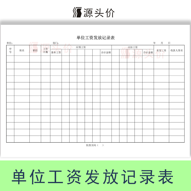单位工资发放记录表明细本员工公司薪酬收款信息职工人劳务单据册