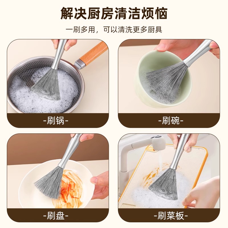 不锈钢锅刷厨房专用钢丝刷长柄纳米清洁刷子可挂式去油污洗锅神器