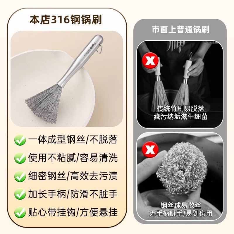 长柄锅刷316不锈钢加长手柄刷锅工具护锅洗碗清洁钢丝球去污神器