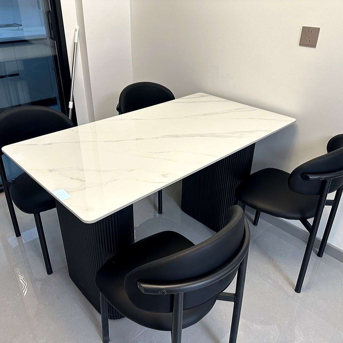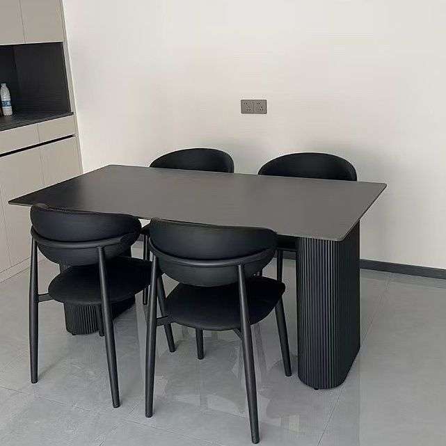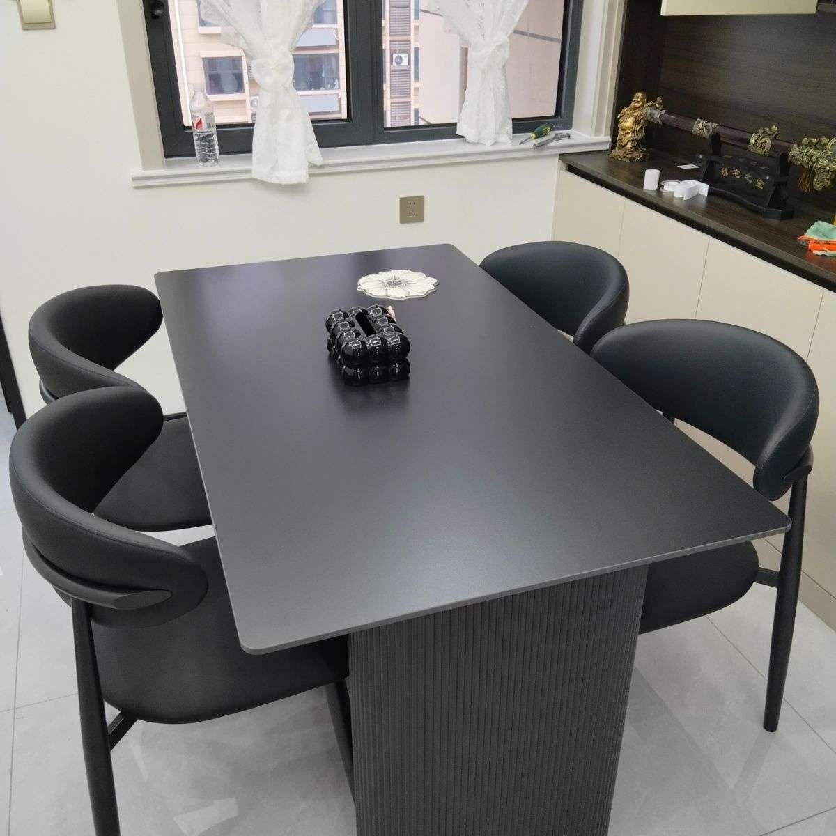 现代极简岩板餐桌黑色家用餐椅组合高级小户型意式长方形饭桌民宿