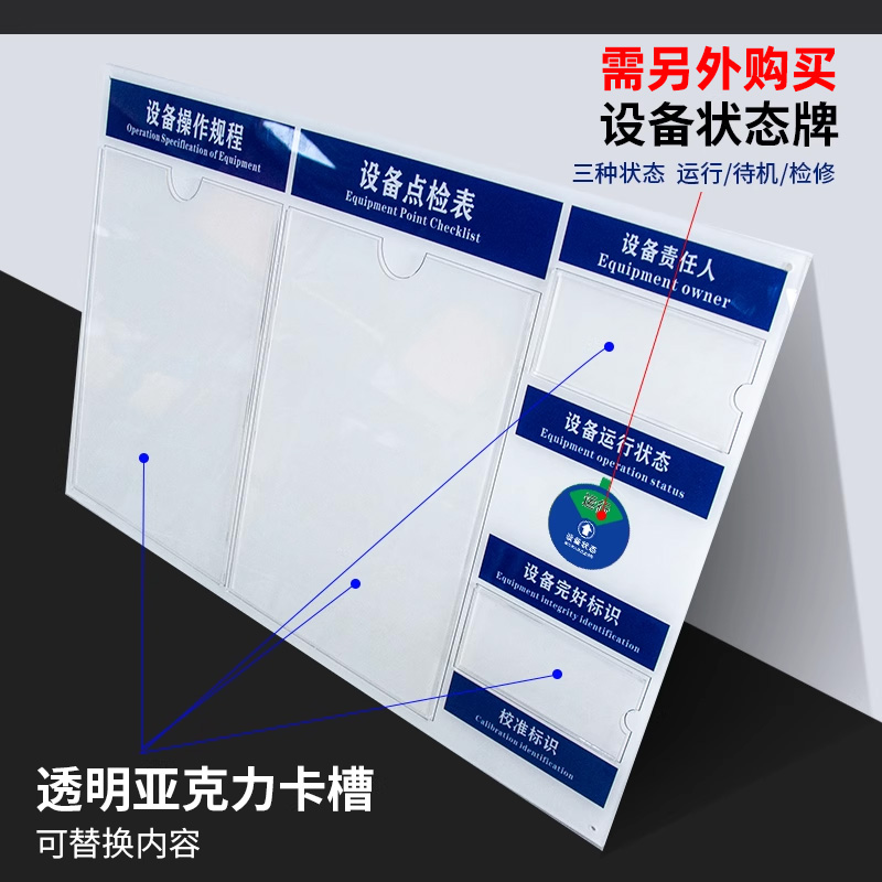 设备状态牌机械操作规程责任人仪器标识机器运行状态牌管理卡亚克力标识牌磁吸式卡故障常开常闭提示牌定制
