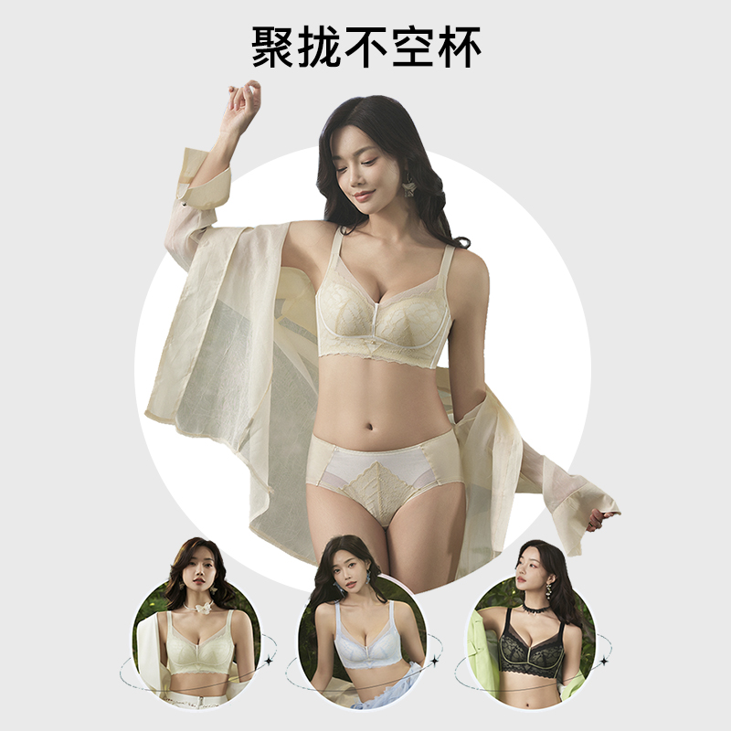 茜施尔性感蕾丝内衣无钢圈中厚杯小胸聚拢收副乳调整型小胸内衣女