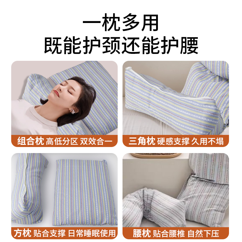 荞麦颈椎枕头连体枕护颈椎助睡眠三角枕成人硬荞麦壳枕可拆卸枕芯