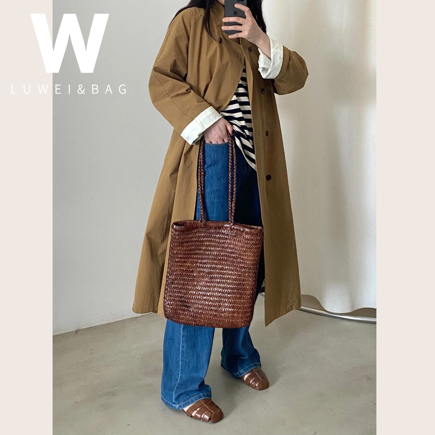 dragon法式牛皮手工编织包大容量通勤托特包2025高级版小众单肩包