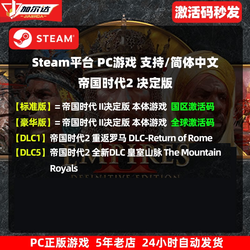 Steam 帝国时代2决定版 国区激活码CDKAge of EmpiresIl PC游戏