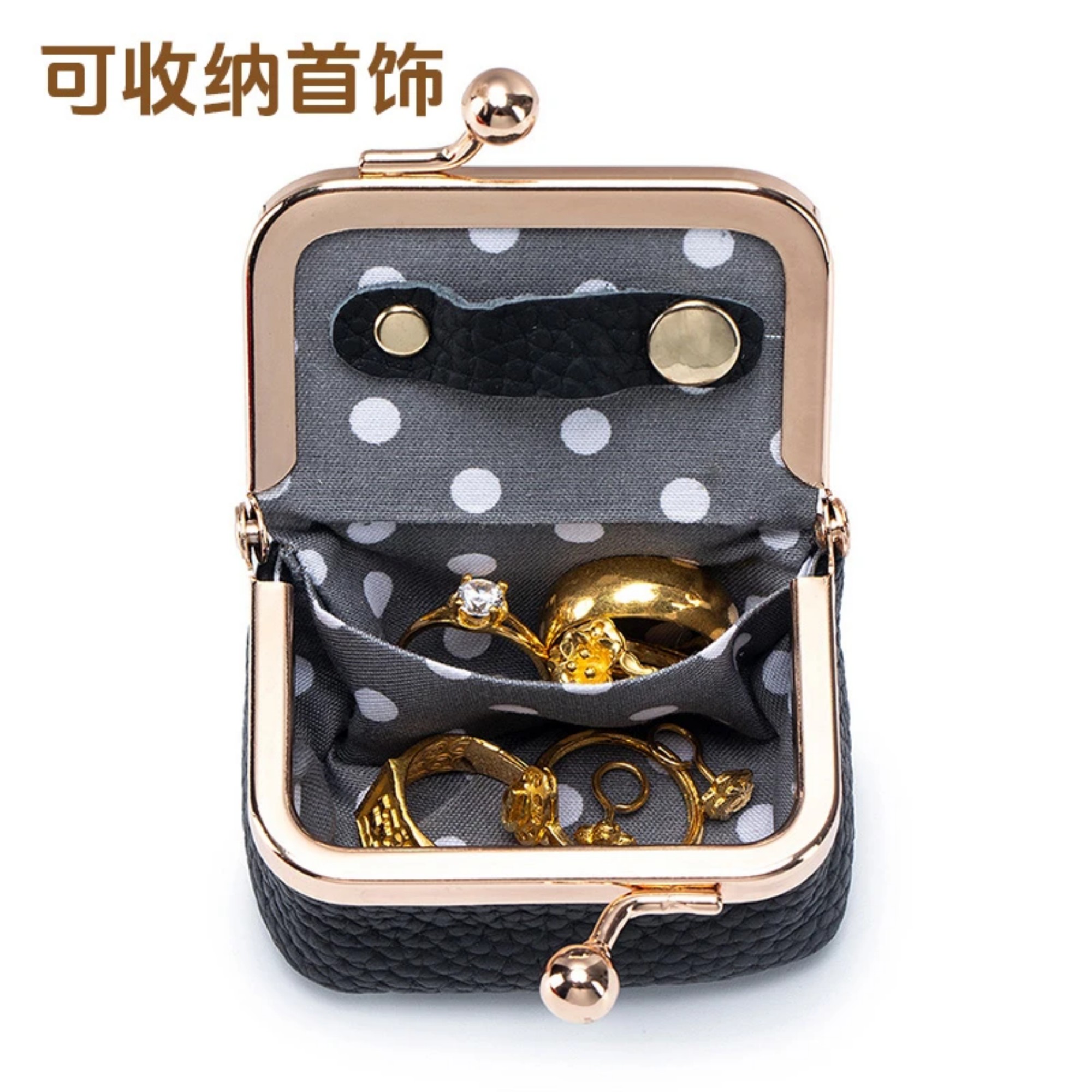 新款真皮小巧口金包钻戒首饰包迷你戒指项链耳环饰品盒硬币零钱包