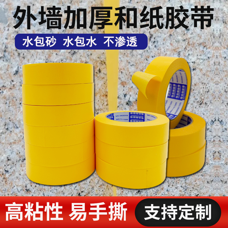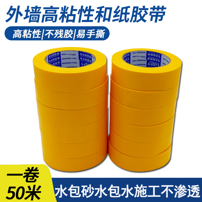 高粘黄色和纸50米外墙分格仿石漆真石漆水包砂不残胶耐高温美纹纸