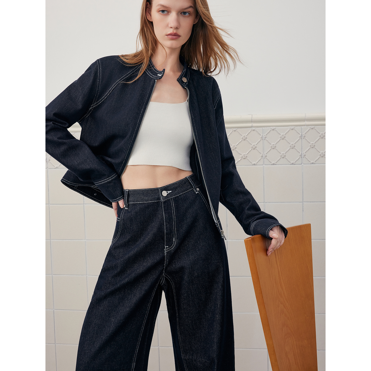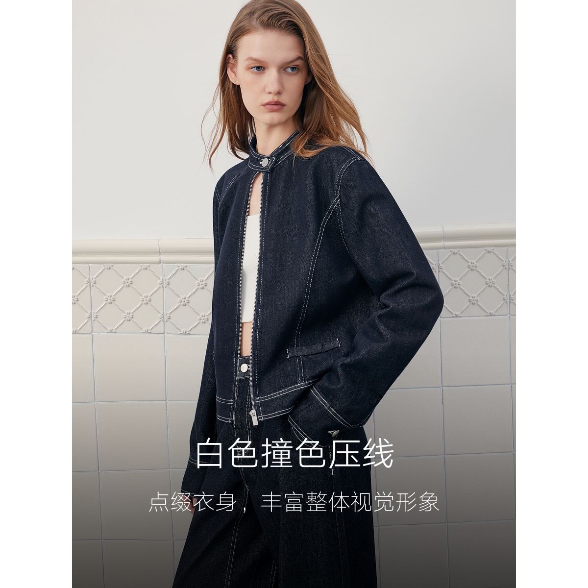 ELLE法式廓形牛仔短外套女2025秋新款天丝工装风时髦通勤夹克上衣
