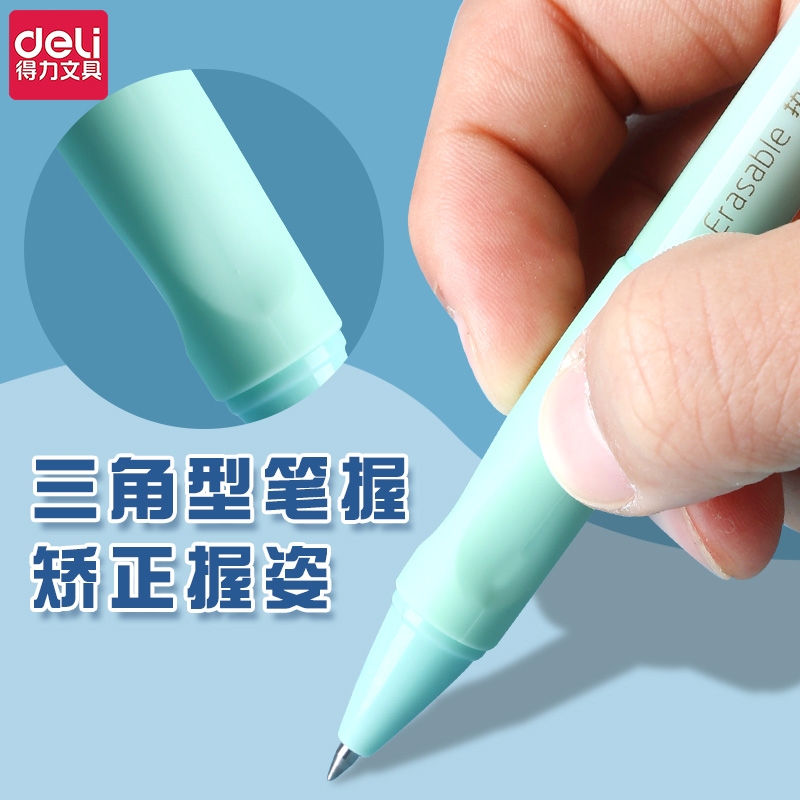 得力按动可擦中性笔小学生专用热可擦笔三年级用摩易檫热敏擦魔力擦0.5mm晶蓝笔芯高颜值黑色圆珠笔蓝色顺滑