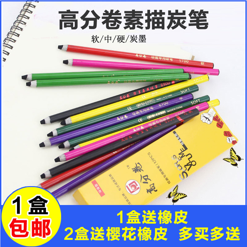 高分卷素描铅笔 软中硬黑u杆炭笔 美术绘图绘画美术炭画铅笔碳笔