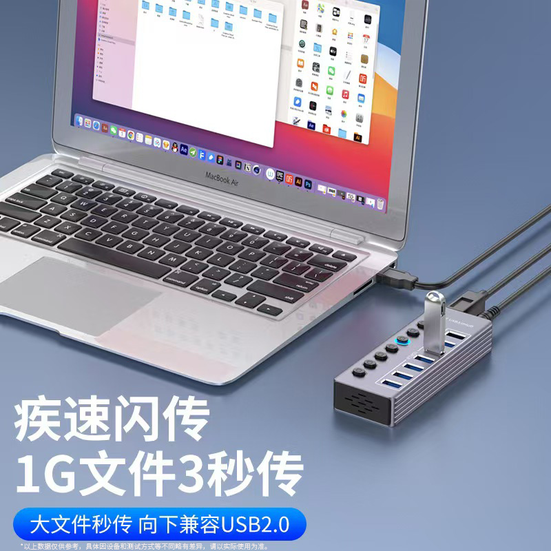 多口usb3.0扩展器带独立开关手机刷机一拖七/十分线器hub集线器台式电脑笔记本接键盘鼠标u盘硬盘打印机