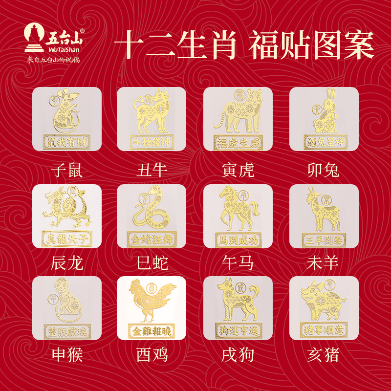 五台山十二生肖守护神手机贴龙蛇本命年金属转运吉祥护身符