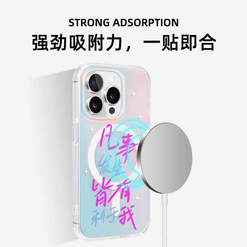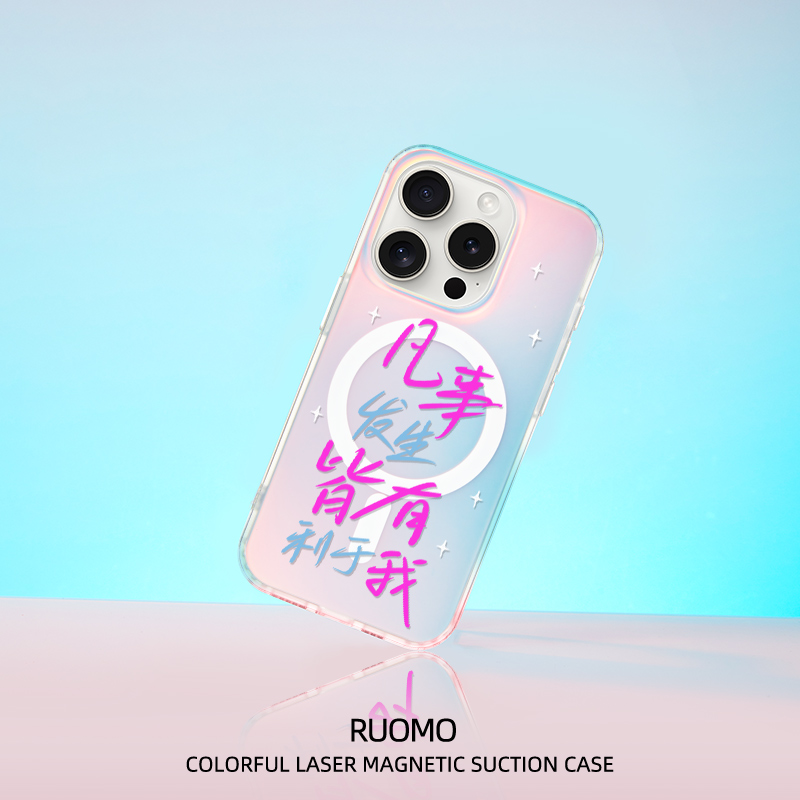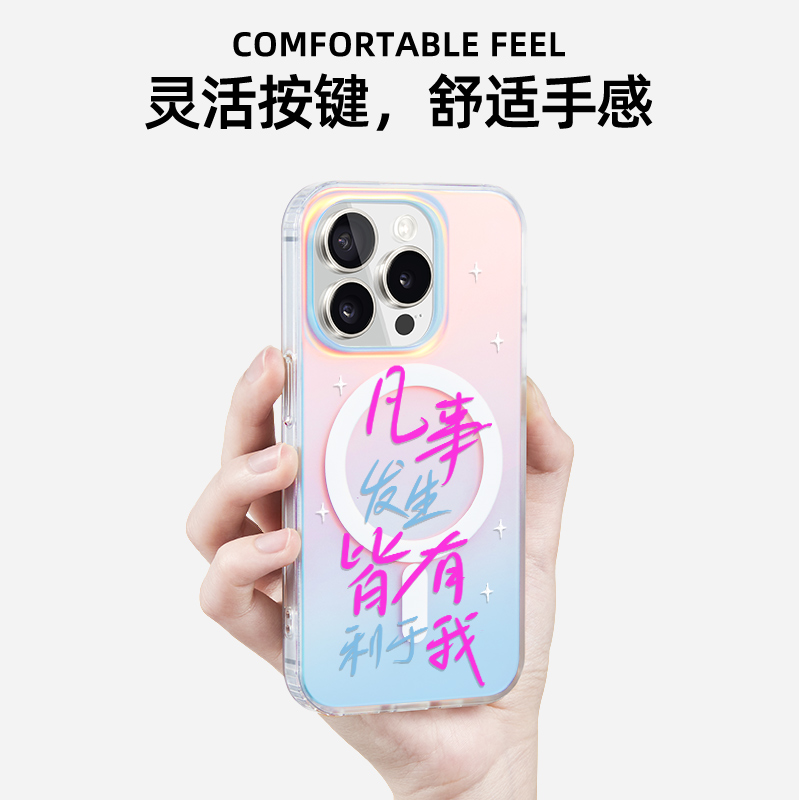若墨适用苹果17promax手机壳新款iphone16pro女15磁吸渐变镭射带挂绳高级感14正念13凡事发生皆有利于我12