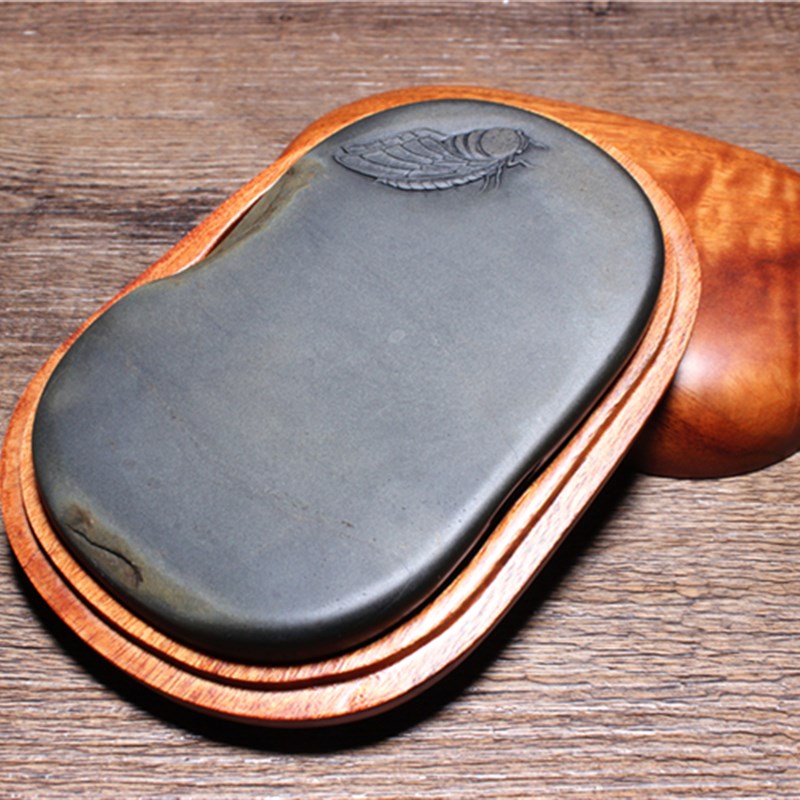 歙砚把玩精品 金蝉 老坑金皮籽料原石罗纹砚台收藏送礼文房兼端砚