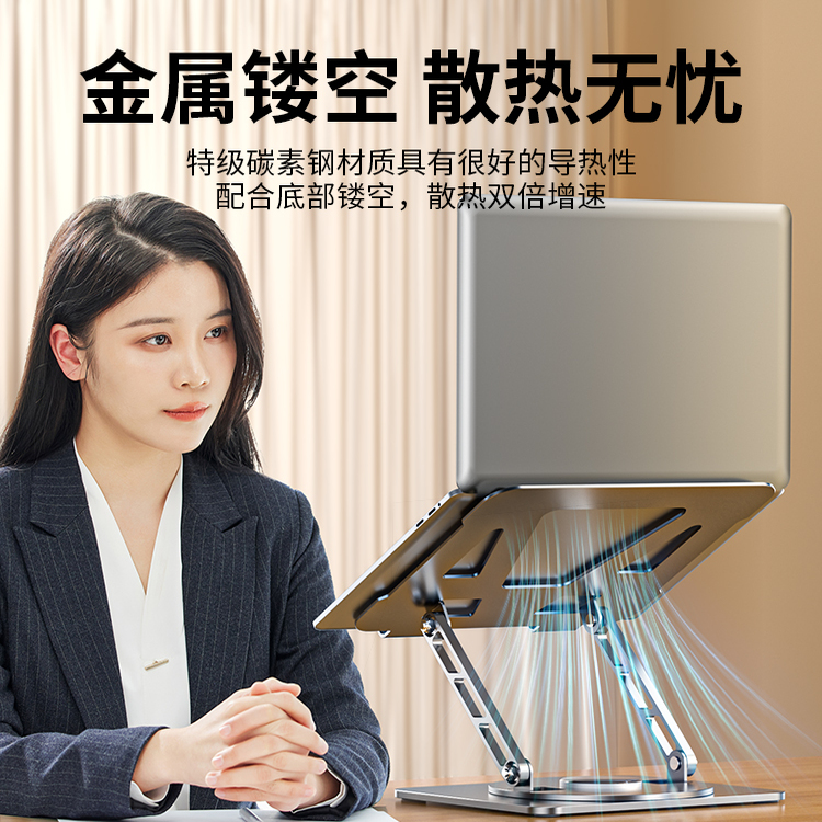 笔记本电脑支架托架悬空增高散热架烧烤架桌面支撑架手提游戏本架子铝合金金属电脑360度可旋转升降架竖立
