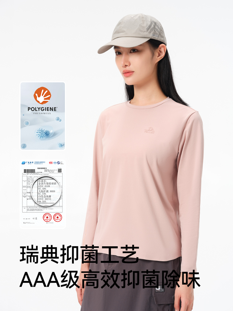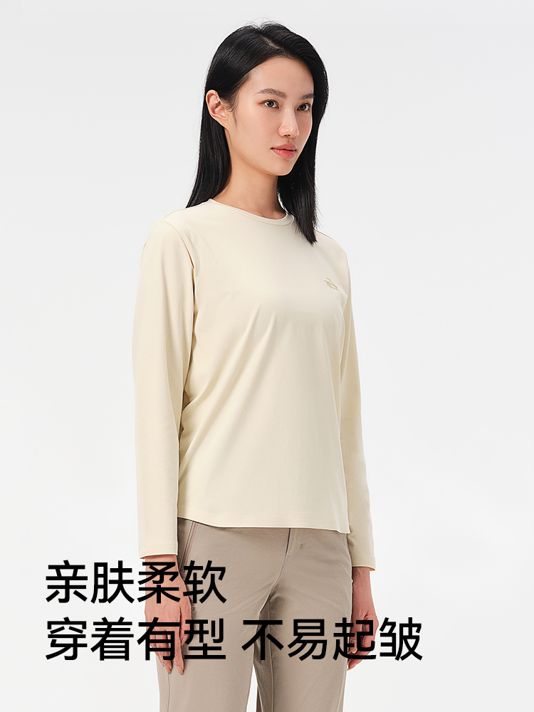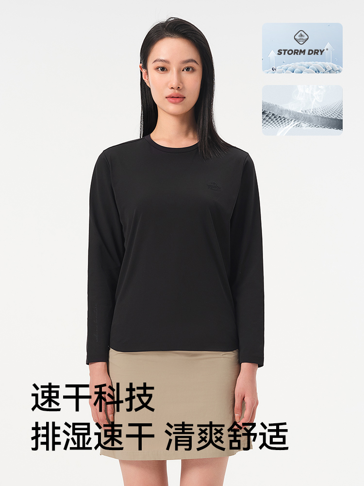 伯希和速干T恤女户外抑菌抗皱透气快干纯色休闲长T恤亲肤运动上衣