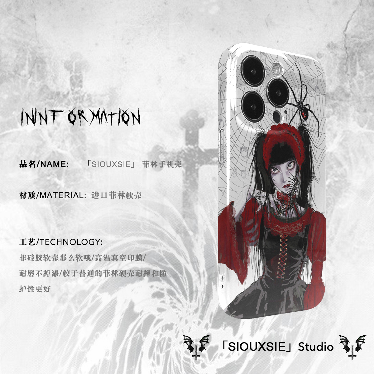 Siouxsie邪典少女暗黑哥特风亚比手机壳适用苹果15proMax小众14pro全包12/11/xr亮面imd菲林软壳xs/7plus日系