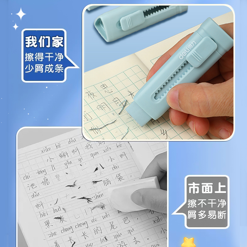 得力推拉橡皮彩色推推乐橡皮擦小学生专用创意卡通可爱不易留痕少屑三角橡皮擦伸缩美术绘画橡皮擦创意推动式