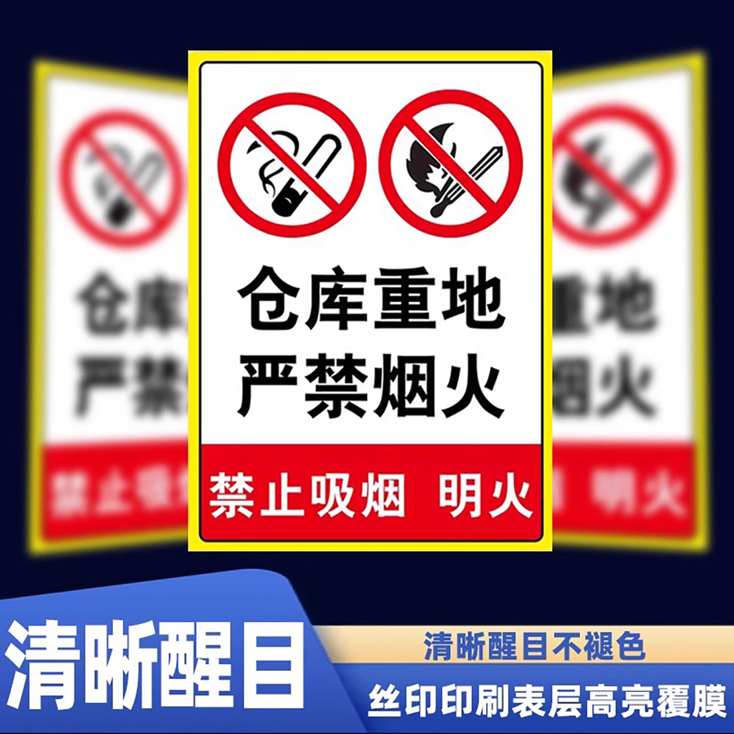 安全警示标志贴禁止吸烟严禁烟火警示牌标识牌消防标识标牌仓库重地防火标志指示牌车间当心触电安全警告贴纸