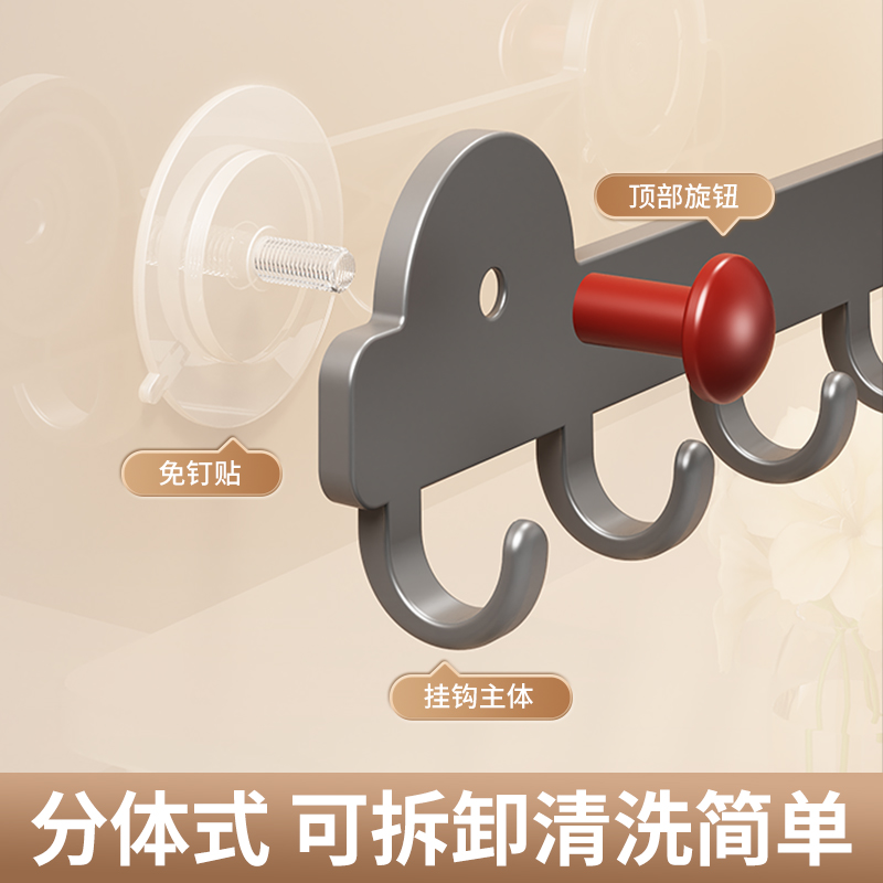 免打孔吸盘挂钩门后强力承重浴室排钩置物架入户门收纳挂衣架厨房