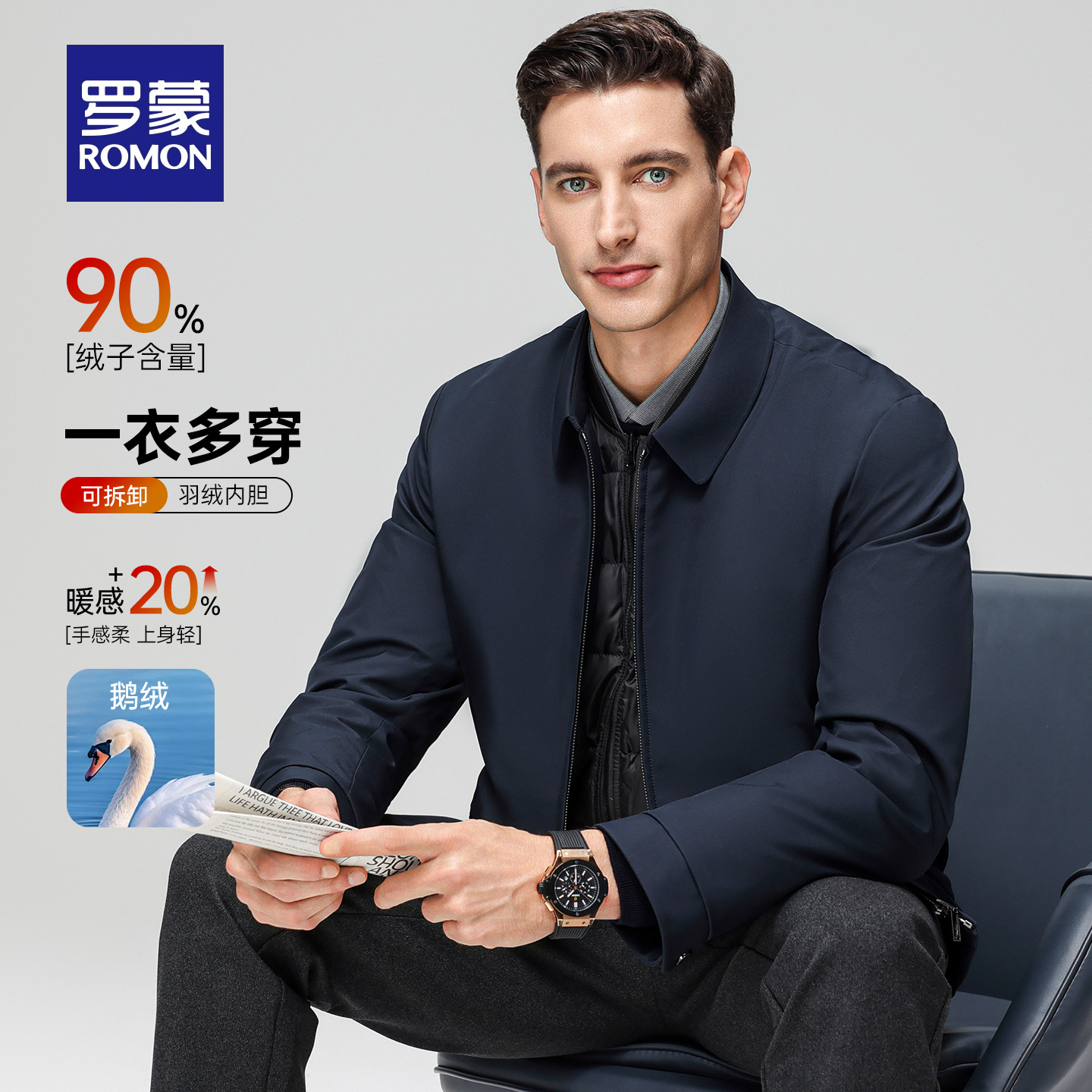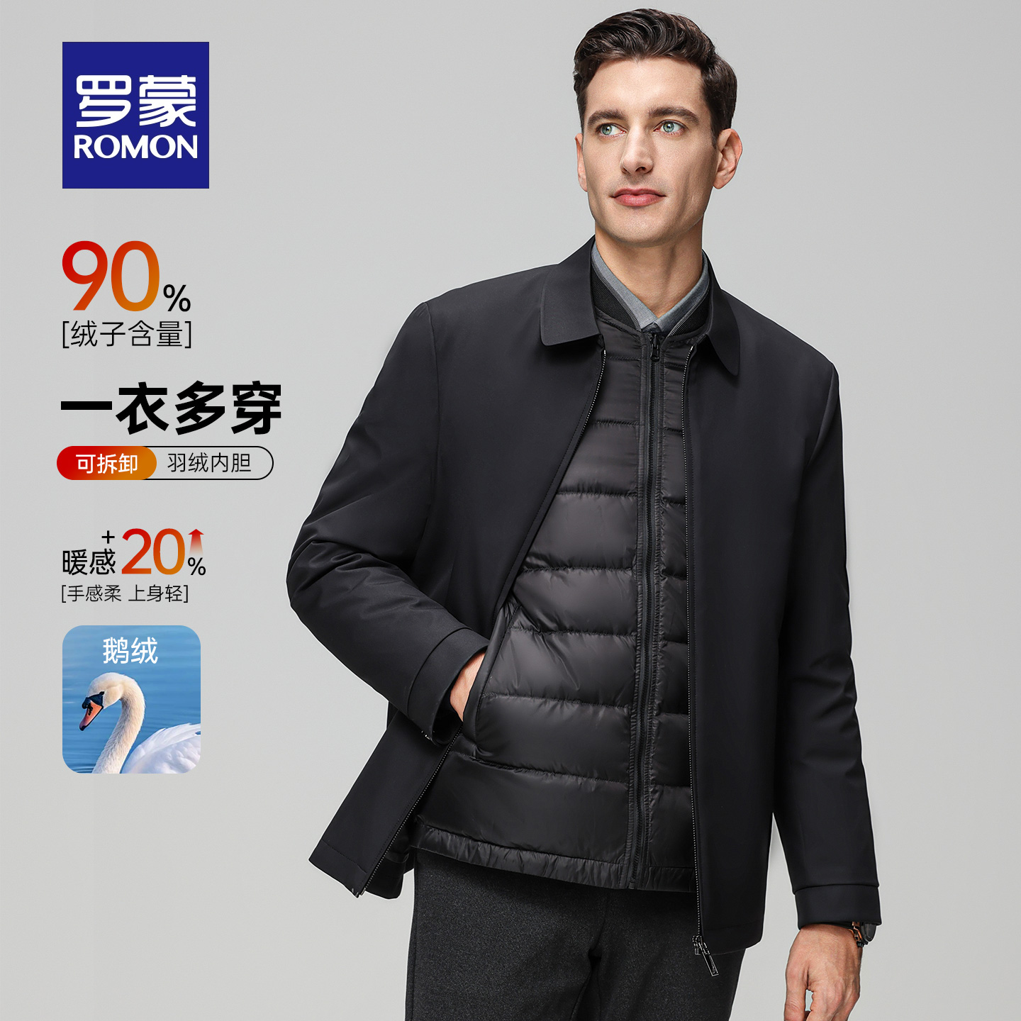 【一衣多穿】罗蒙中老年男士商务羽绒服2025秋冬新款行政保暖夹克