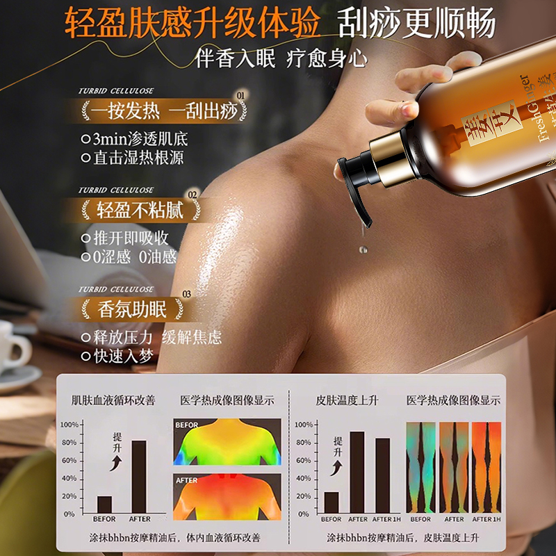 生姜艾草精油发热开背按摩精油刮痧推背全身体推拿油舒通经络免洗