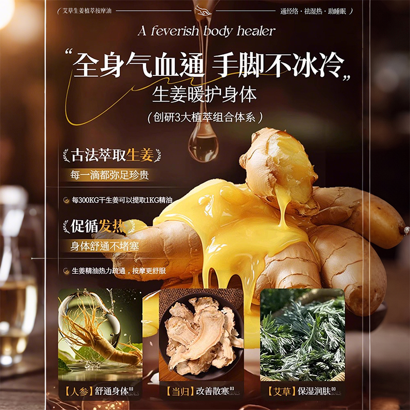 生姜艾草按摩精油全身通经络发热开背推拿刮痧身体正品官方旗舰店