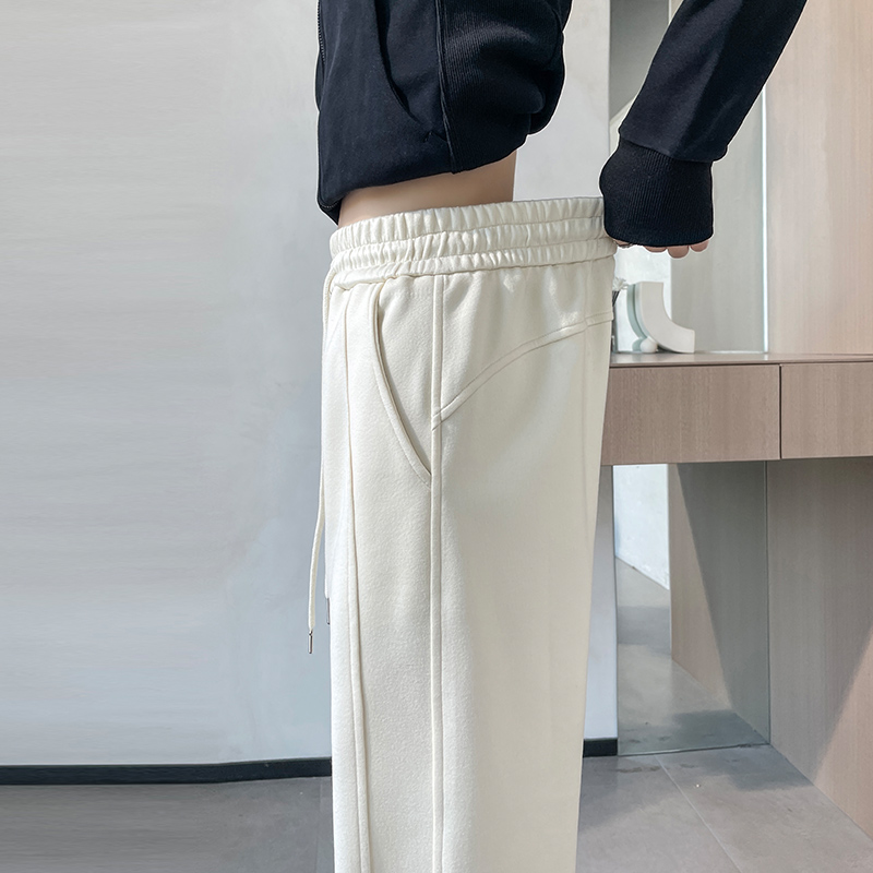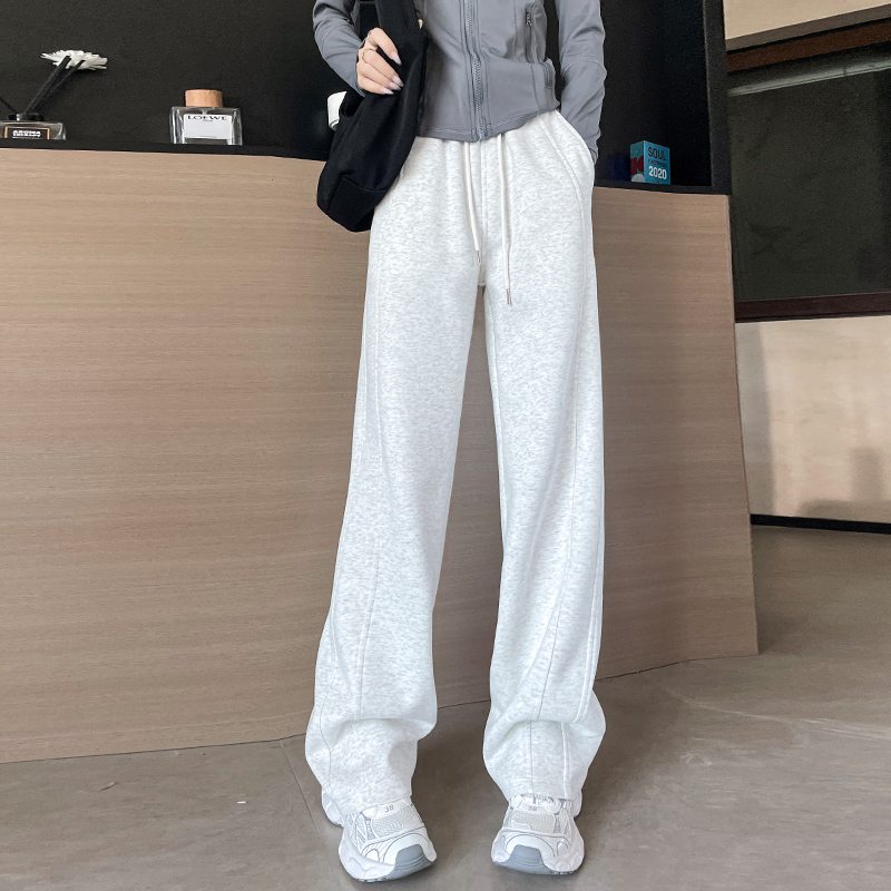 深灰色糯米休闲裤女秋季新款胖妹妹mm高腰宽松显瘦垂感阔腿长裤子